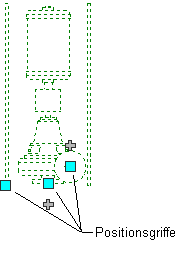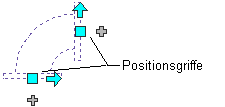 Mit Positionsgriffen können Sie MV-Bauteile, Formstücke oder Rohrsegmente der aktuellen XY-Ebene in einer Rohrstrecke unter Beibehaltung der Verbindungsfähigkeit verschieben (als assoziative Verschiebung bezeichnet). Positionsgriffe werden an den Einfüge- und Verbinderpunkten des Bauteils angezeigt. Wenn Sie ein MV-Bauteil an eine neue Position verschieben, können die mit dem Bauteil verbundenen Rohrsegmente verschoben, geschrumpft oder gestreckt werden, um die Verbindung mit dem System beizubehalten. Sie können auch ein Rohrsegment verschieben, ohne dass dies Auswirkungen auf die Position von MV-Bauteilen oder anderen Bestandteilen der Rohrstrecke hat.