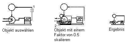 In dem folgenden Verfahren verringern Sie zum Beispiel die Größe eines Schemasymbols um die Hälfte, indem Sie es mit einem Faktor von 0.5 skalieren. Die in Klammern eingeschlossenen Zahlen beziehen sich auf die Abbildung im Anschluss an das Verfahren.
