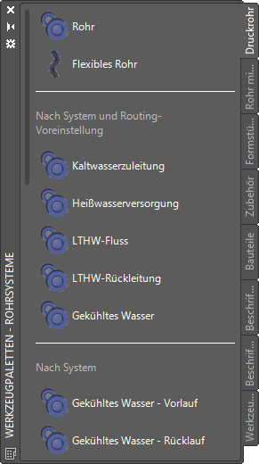Objektwerkzeuge zum Hinzufügen von Rohrsystemobjekten
