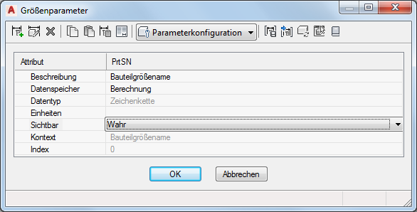 - Wenn Sie die Bearbeitung der Eigenschaften von Bauteilgrößen abgeschlossen haben, klicken Sie auf OK.