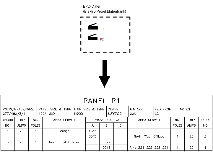 Für Werkpläne werden Schalttafel-Bauteillisten mithilfe der Elektro-Projektdatenbank erstellt. Ebenso stammen die Schaltkreisdaten direkt aus der Elektro-Projektdatenbank.