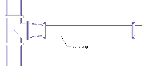 Anmerkung: Die Isolierung ist ein Beschriftungselement, das zeigt, wo Isolierung im Rohrsystem verwendet wird. Da sie kein Objekt ist, können Sie nur ändern, wie und wo sie in der Zeichnung angezeigt wird. Sie können jedoch keine Bauteillisten für die Isolierung erstellen.