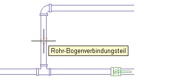- Halten Sie den Cursor über das vorhandene Rohrsegment, um den Rohr-Bogenverbinder oder Rohr-Endverbinder anzuzeigen.