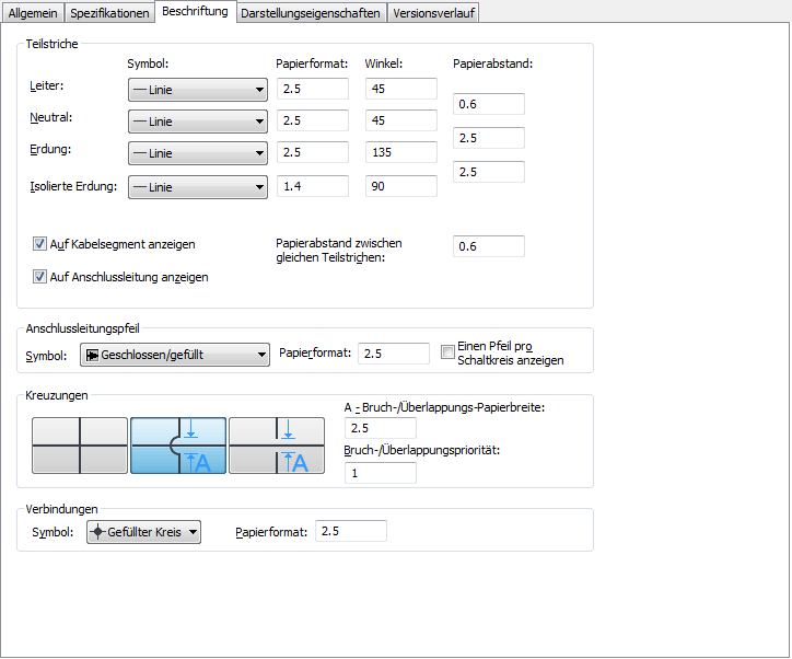Sie können angeben, dass kreuzende Kabel unverändert, überlappend oder durch eine Unterbrechung einer bestimmten Breite dargestellt werden sollen.