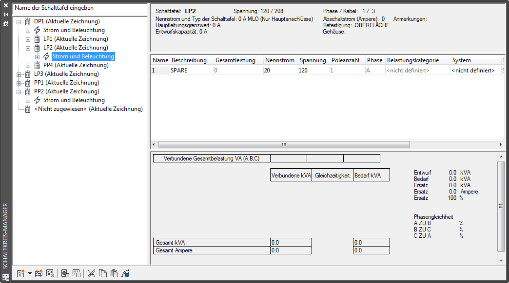 Mit dem Schaltkreis-Manager können Sie Schaltkreisdaten und Informationen für Elektrosystemzeichnungen anzeigen. Wenn Sie eine Elektro-Projektdatenbank verwenden, können Sie Schaltkreisdaten in allen verknüpften Zeichnungen anzeigen. Wenn Sie keine Elektro-Projektdatenbank verwenden, können Sie Schaltkreisdaten in der aktuellen Zeichnung anzeigen.