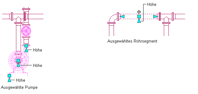 ) können Sie die Höhe von Bauteilen und Rohrsegmenten in der Modellansicht relativ zum oberen Rand, zur Mittellinie oder unteren Rand des Segments ändern.