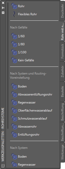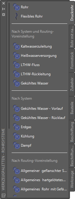 , um die Werkzeugpalette Rohrsysteme anzuzeigen.