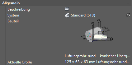 Beschreibt das Luftkanal/-rohr-Bauteil (optional). |