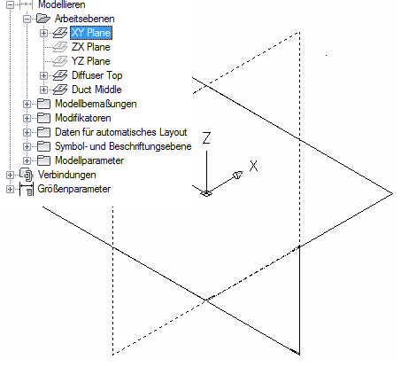 Die ZX-Ebene, die YZ-Ebene und die XY-Ebene werden erstellt.