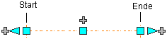 Mithilfe der Start- und Endgriffe können Sie die XY-Position des Startpunkts und des Endpunkts eines Segments ändern. Dies ist insbesondere in der konzeptuellen Entwurfsphase von Strecken praktisch, weil Sie auf diese Weise ein Segment problemlos mit einer vorhandenen Strecke verbinden können.