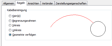 Damit wird festgelegt, wie Kabel angezeigt werden, wenn sie mit Schalttafeln verbunden sind. Das Vorschaubild rechts zeigt ein Beispiel der aktuellen Auswahl.