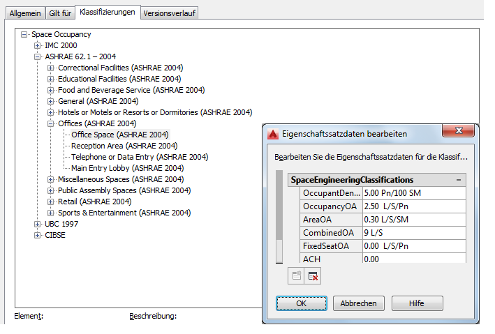 So zeigen Sie Klassifizierungsdefinitionen für Belegungsdichten und Luftströme an