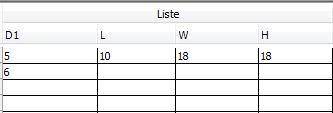 Diese Werte werden dazu verwendet, die Liste der Bauteilgrößen zu erstellen. Wenn Sie in eine Zelle Werte eingeben möchten, doppelklicken Sie auf die Zelle und geben den Wert ein. Wenn Sie auf die Befehle Kopieren, Einfügen und Löschen zugreifen möchten, klicken Sie mit der rechten Maustaste auf die Zelle.
