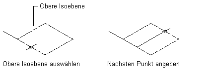 - Um Isoebenen währed des Zeichnens zu wechseln, wählen Sie in der Eigenschaftenpalette unter Isoebene eine andere Isoebene, und geben Sie dann weitere Punkte zum Zeichnen der Linie an.