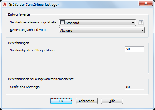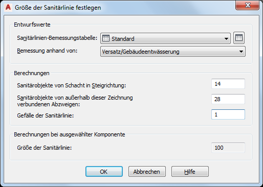 - Notieren Sie sich den berechneten Wert für Sanitärobjekte von Stapel in Steigrichtung. Dieser Wert wird im folgenden Schritt benötigt.