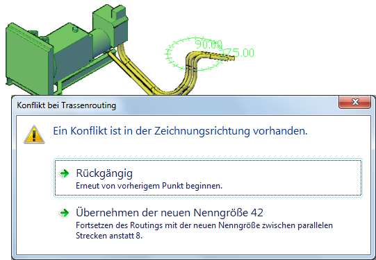 Folgende Konflikte können beim Zeichnen einer parallelen Installationsrohrstrecke auftreten: