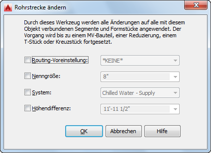 Dialogfeld Rohrstrecke ändern (für Rohre oder Installationsrohre)
