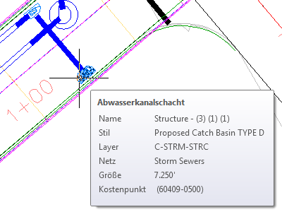 1. Wählen Sie in der Zeichnung eines der Auffangbecken an der Straße aus.