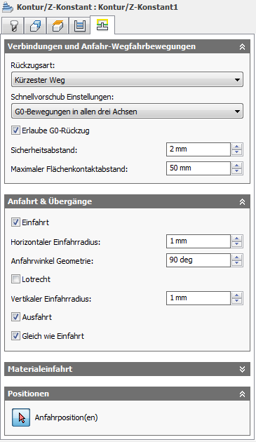 Der Radius des vertikalen Bogens zum Glätten der Einfahrbewegung, wenn diese zum Werkzeugweg selbst erfolgt