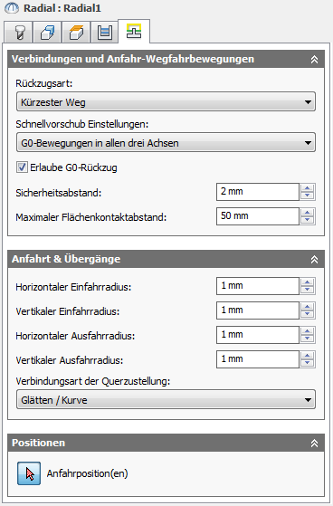Der Radius des vertikalen Bogens zum Glätten der Einfahrbewegung, wenn diese zum Werkzeugweg selbst erfolgt