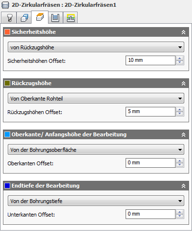- Von Rückzugshöhe: Inkrementeller Versatz gegenüber der Rückzugshöhe.