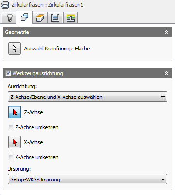 Gibt an, wie mithilfe einer Kombination aus Dreiergruppenausrichtungs- und Ursprungsoptionen die Werkzeugorientierung bestimmt wird.