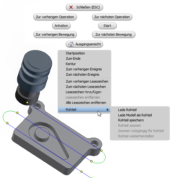 Weitere Rohteil-Optionen des Minimenüs im Simulations-Player