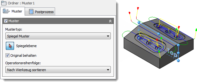 - Wählen Sie schließlich im Dropdown-Menü Abarbeitungsreihenfolge aus, ob die Operationen im Muster anhand von Werkzeug oder Operation neu sortiert werden sollen oder ob die Operationsreihenfolge im Muster beibehalten werden soll.