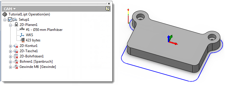 Mit Inventor HSM können Sie einzelne Operationen davor schützen, bei Änderungen des Modells ungültig zu werden. Dies ist nützlich, wenn Sie Operationen haben, die bereits auf der Maschine ausgeführt wurden, und die Restmaterialbearbeitung von diesen Operationen durchführen möchten, während Sie Änderungen am Modell vornehmen.