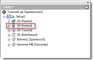 Die Operation 2D-Kontur1 ist geschützt, wie anhand des Schloss-Symbols zu sehen ist