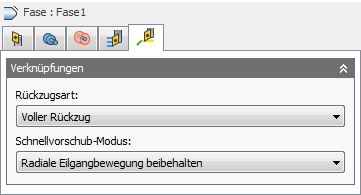 Steuert, wie das Werkzeug nach jedem Schnittdurchgang auf den Abstandsdurchmesser zurückgezogen wird, bzw. ob es nur ein kurzes Stück vom Werkstück zurückgezogen wird. Der Abstand wird durch den Wert für Sicherheitsabstand bestimmt.