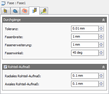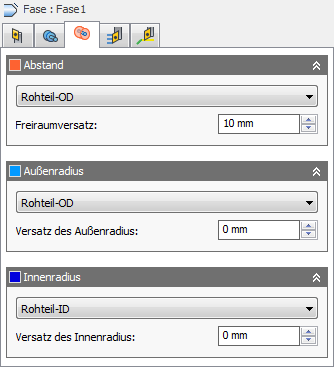 Bei einer Änderung des radialen Rohteil-Aufmaßes wird das axiale Rohteil-Aufmaß automatisch auf denselben Betrag festgelegt, sofern Sie das axiale Rohteil-Aufmaß nicht manuell eingeben.