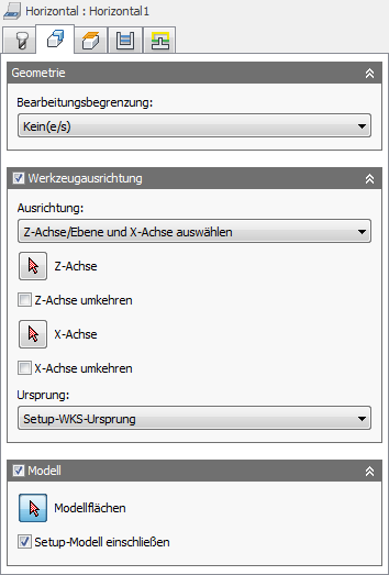 Diese vorgabemäßig aktivierte Option sorgt dafür, dass das im Setup ausgewählte Modell zusätzlich zu den in der Operation ausgewählten Modellflächen einbezogen wird. Wenn Sie dieses Kontrollkästchen deaktivieren, wird der Werkzeugweg nur für die in der Operation ausgewählten Flächen erzeugt.