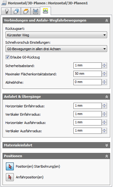Der Radius des vertikalen Bogens zum Glätten der Einfahrbewegung, wenn diese zum Werkzeugweg selbst erfolgt
