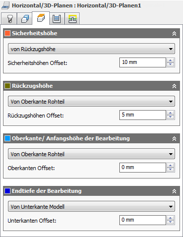 Der Rückzugshöhenversatz wird in Abhängigkeit von der in der oben stehenden Dropdown-Liste ausgewählten Rückzugshöhe angewendet.