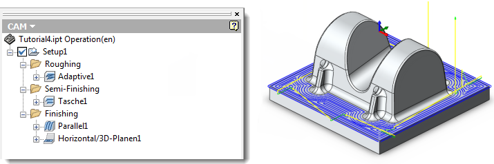 Im Gegensatz zu Setups wirken sich Ordner nicht auf die Operationen aus, die sie enthalten, sind jedoch nützlich zum Gruppieren von Operationen. Beispiel: Ein häufig auftretendes Szenario besteht darin, separate Ordner für Schrupp-, Vorschlicht- und Schlichtoperationen zu erstellen.