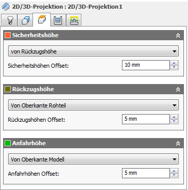 Der Sicherheitshöhen-Versatz wird in Abhängigkeit von der in der oben stehenden Dropdown-Liste ausgewählten Sicherheitshöhe angewendet.
