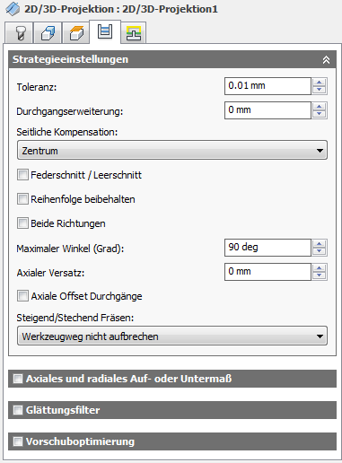 Glättet den Werkzeugweg, indem überschüssige Punkte entfernt und Bogen innerhalb der definierten Filtertoleranz angepasst werden.