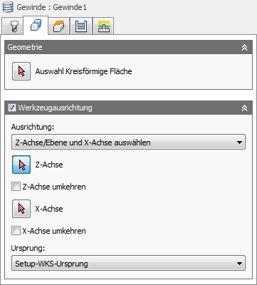 Gibt an, wie mithilfe einer Kombination aus Dreiergruppenausrichtungs- und Ursprungsoptionen die Werkzeugorientierung bestimmt wird.