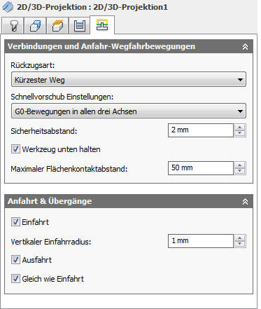 Der Radius des vertikalen Bogens zum Glätten der Einfahrbewegung, wenn diese zum Werkzeugweg selbst erfolgt