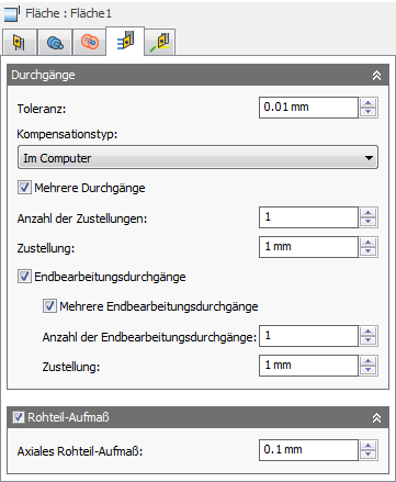 Aktivieren Sie diese Option, um mehr als einen Endbearbeitungsdurchgang anzugeben. Wenn die Option Endbearbeitungsdurchgänge aktiviert und die Option Mehrere Endbearbeitungsdurchgänge deaktiviert ist, dann wird nur ein Endbearbeitungsdurchgang durchgeführt.