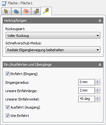 Einstellungen auf der Registerkarte Verbindungen und Anfahr-Wegfahrbewegungen