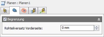 Gibt an, wie weit die Bearbeitung über die Modellvorderseite hinaus erfolgt.