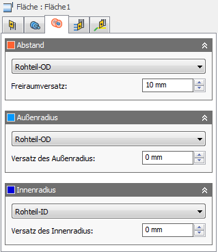 Bei einer Änderung des radialen Rohteil-Aufmaßes wird das axiale Rohteil-Aufmaß automatisch auf denselben Betrag festgelegt, sofern Sie das axiale Rohteil-Aufmaß nicht manuell eingeben.