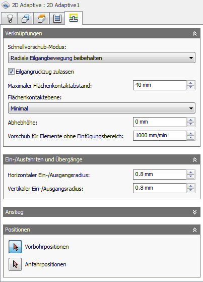 Der Radius des vertikalen Bogens zum Glätten der Einfahrbewegung, wenn diese zum Werkzeugweg selbst erfolgt.