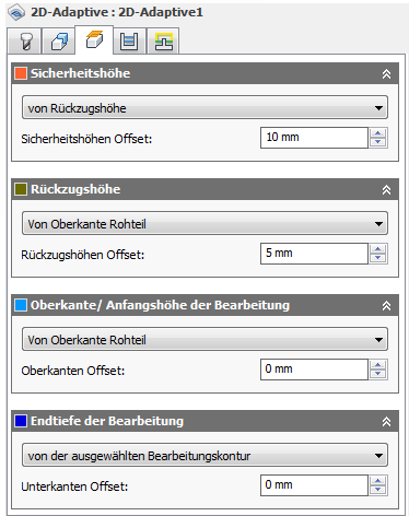 Der Rückzugshöhenversatz wird in Abhängigkeit von der in der oben stehenden Dropdown-Liste ausgewählten Rückzugshöhe angewendet.