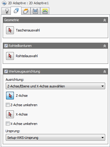 Bei nicht exakt vertikalen Flächen interpoliert Inventor HSM zwischen den Werten für axiales (unteres) und radiales Rohteil-Aufmaß, sodass das in radialer Richtung auf diesen Flächen verbleibende Rohteilmaterial je nach Flächenneigungswinkel und Wert für axiales Rohteil-Aufmaß vom angegebenen Wert abweichen könnte.