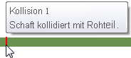 Sollte es zu einer Kollision zwischen dem Schaft oder Halter und dem Rohteil kommen, erscheint eine rote Markierung auf der Zeitachsensteuerung mit einer Beschreibung der Kollision in einer QuickInfo.