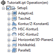 Hiermit sind die Werkzeugwege für dieses Lernprogramm abgeschlossen. Im CAM-Browser sollten nun die folgenden Operationen aufgelistet sein: