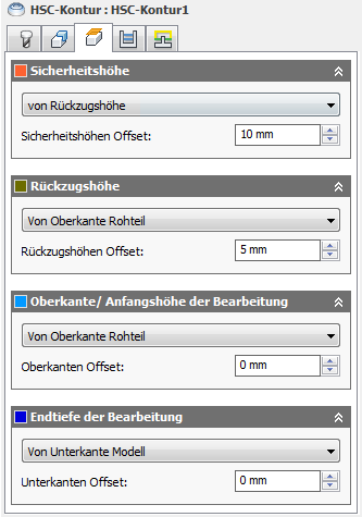 Der Rückzugshöhenversatz wird in Abhängigkeit von der in der oben stehenden Dropdown-Liste ausgewählten Rückzugshöhe angewendet.